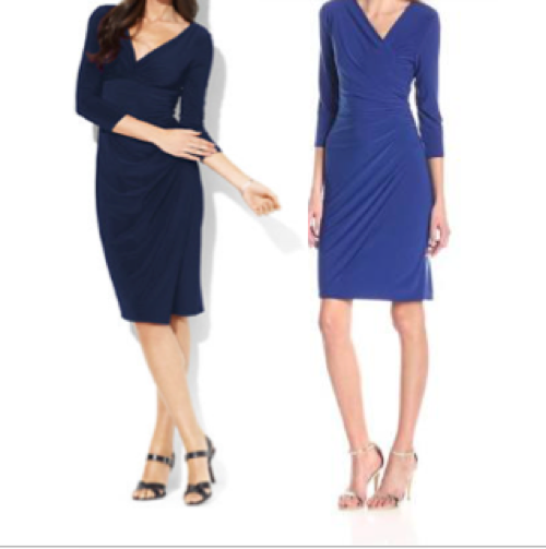The dress on the left is Genie’s dress, it is a Ralph Lauren Jersey Faux-Wrap Dress. The dress features a flattering empire waistline and a feminine faux-wrap silhouette. You can find the dress here!