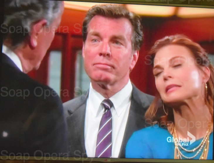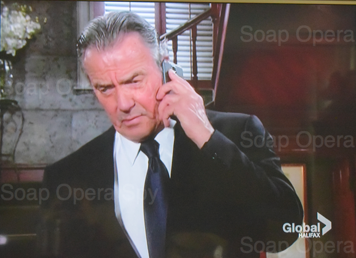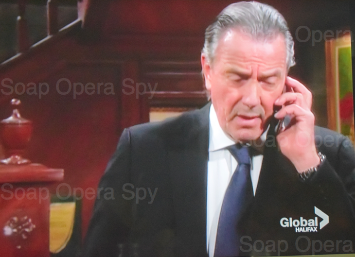 Victor [Eric Braeden] calls the police on the Island to see if there is news on Jack Abbott [Peter Bergman] but they tell him, no news yet. Victor tells them to find JACK!