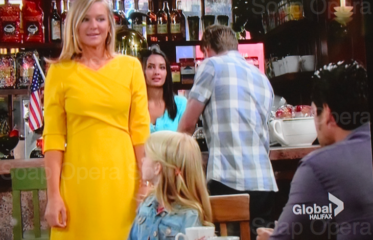 Dylan comes to see Sharon at Crimson Lights – Faith sees him and runs over and tells him Daddy is going to talk to the judge so I can sleep at Mommy’s. Dylan is surprised and Sharon tells him it was actually Sage.