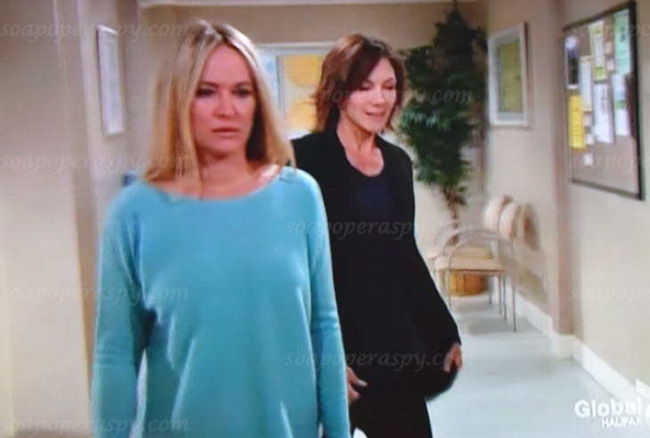 At Fairview Sharon (Sharon Case) is walking around and Patty (Stacy Haiduk) walks up to her and says, “Hey there stranger!” Sharon is shocked. Patty tells Sharon she got transferred back to Fairview and she is so happy because the prison was horrible. Patty asks Sharon what Jack (Peter Bergman) has been up too lately. Sharon makes an excuse and leaves.