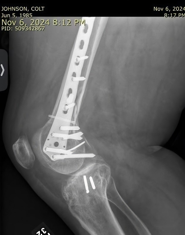 In the original accident, Colt suffered a dislocated and broken leg, with fractures to both his tibia and fibula, and a torn meniscus. He stayed in the hospital for weeks and underwent three surgeries in one month.