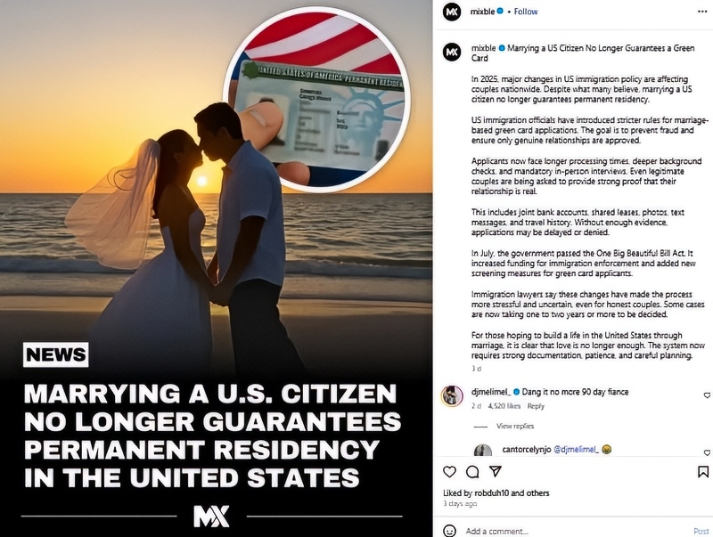 The post focused on major changes to U.S. immigration policy that might challenge the premise of 90 Day Fiancé, where stars marry a U.S. citizen. Additionally, it suggested to fans that TV stars might no longer be guaranteed a green card. The news got attention from both cast members and fans of the show.