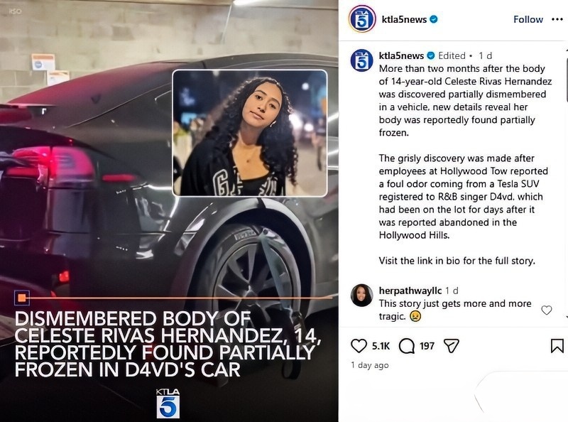 Aside from that, people who follow the case already know that Celeste Rivas Hernandez was dismembered. Her body was also in an advanced stage of decomposition inside a Tesla owned by D4vd.