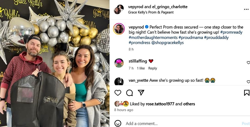 “Perfect Prom dress secured — one step closer to the big night! Can’t believe how fast she’s growing up!” Veronica wrote. Additionally, she posted some hashtags to explain further: