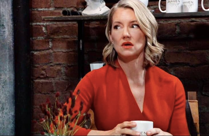 General Hospital spoilers and updates tease Nina Reeves (Cynthia Watros) is shocked by a surprise visitor-she turns a corner, and there’s her ex, Valentin Cassadine (James Patrick Stuart)! The big question is, is she trapping him, or is he trapping her?