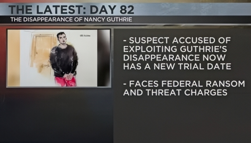 Charged with “transmitting a demand for ransom in interstate commerce and using a telecommunications device to threaten or harass,” Derrick Callella first appeared in court in mid-February. The lastest update arrived via KVOA-TV this week. The oulet noted that the trial date for the ransom scam regarding Nancy Guthrie was set for June 23.